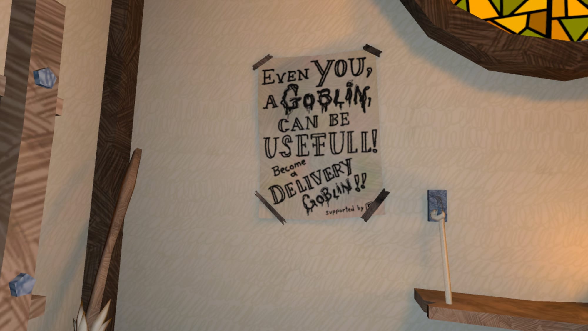 Ты играешь за низшего гоблина. Однако не стоит отчаиваться. Как заявляет плакат о повышении морального духа компании «Смертельная доставка», развешенный по стенам виртуальной комнаты для перерывов, которая также служит лобби для многопользовательской игры, даже ты можешь быть полезен!